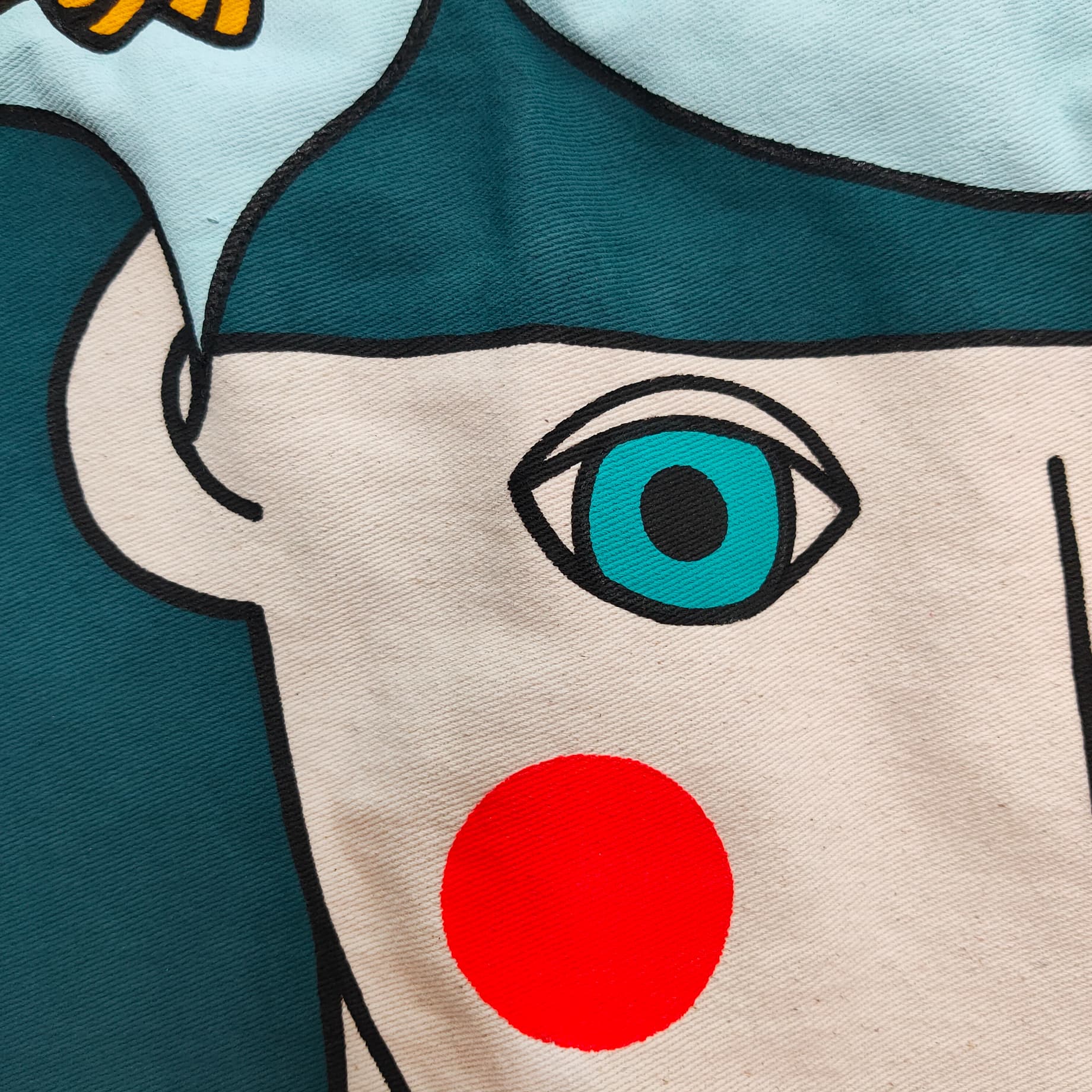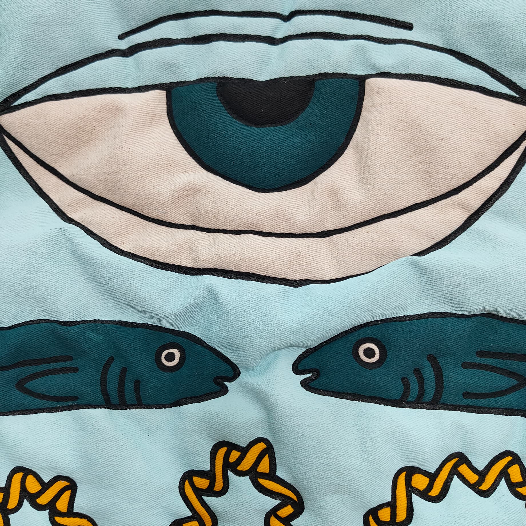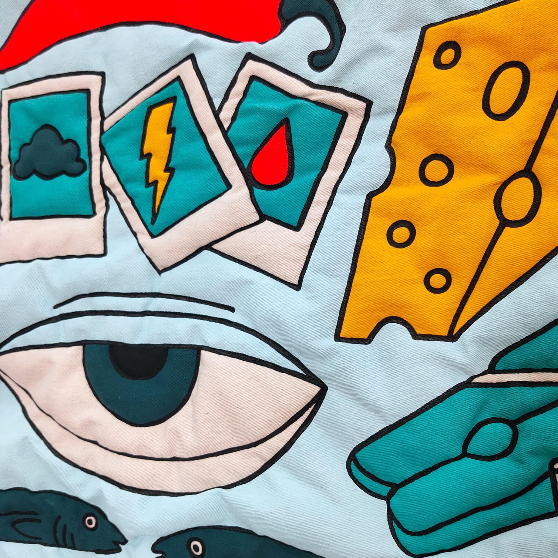 - Unbleached Cotton Canvas, Acrylic Paint, Stuffing.