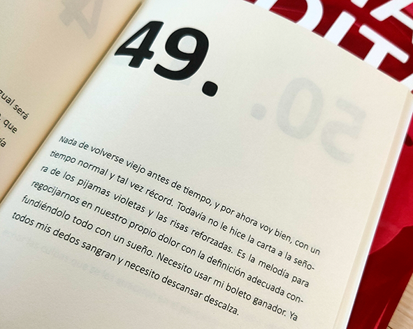 It is a work laden with dreamlike symbolism, entwined with simple, everyday images. Written in a distinctly Uruguayan Spanish, each of the 73 poems is a fleeting vignette that together form a story with neither beginning nor end. Every poem is a fragment of a heart in search, and of a mind that refuses to be silent. Each is an experiment in cleansing cursed thoughts.