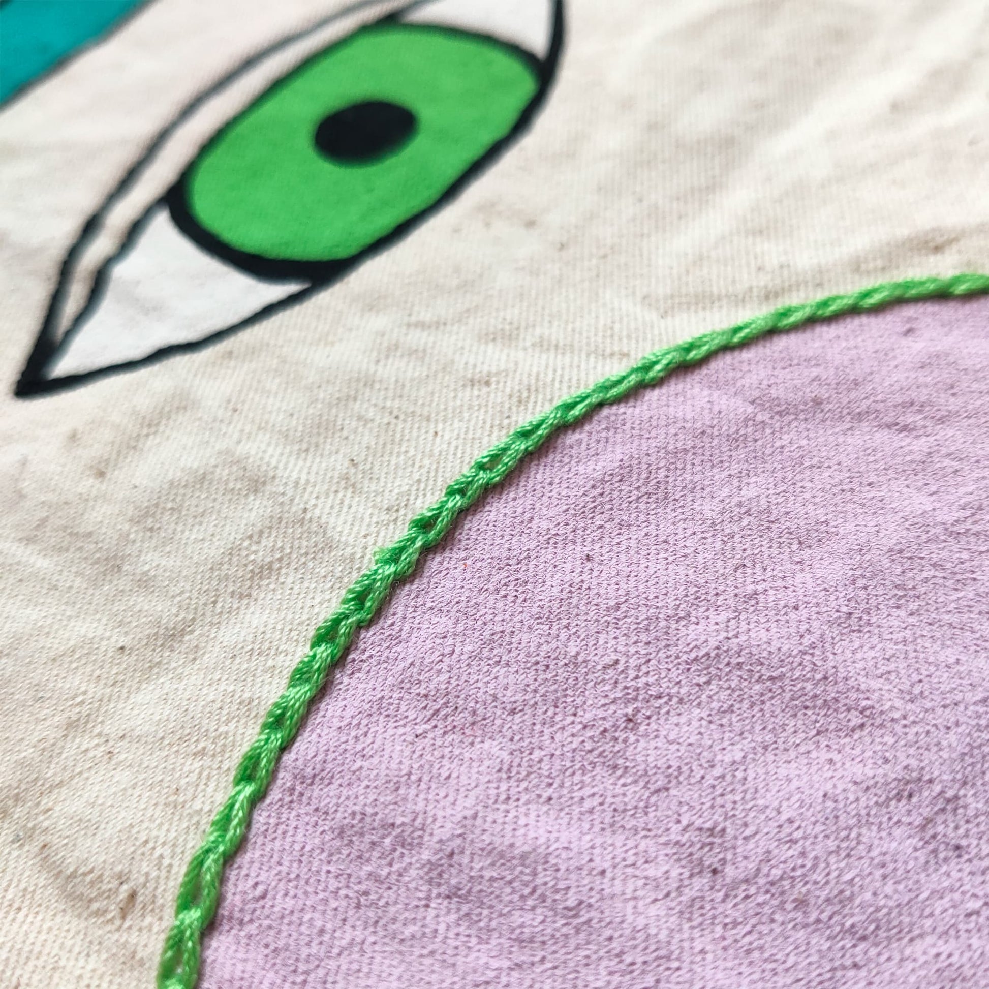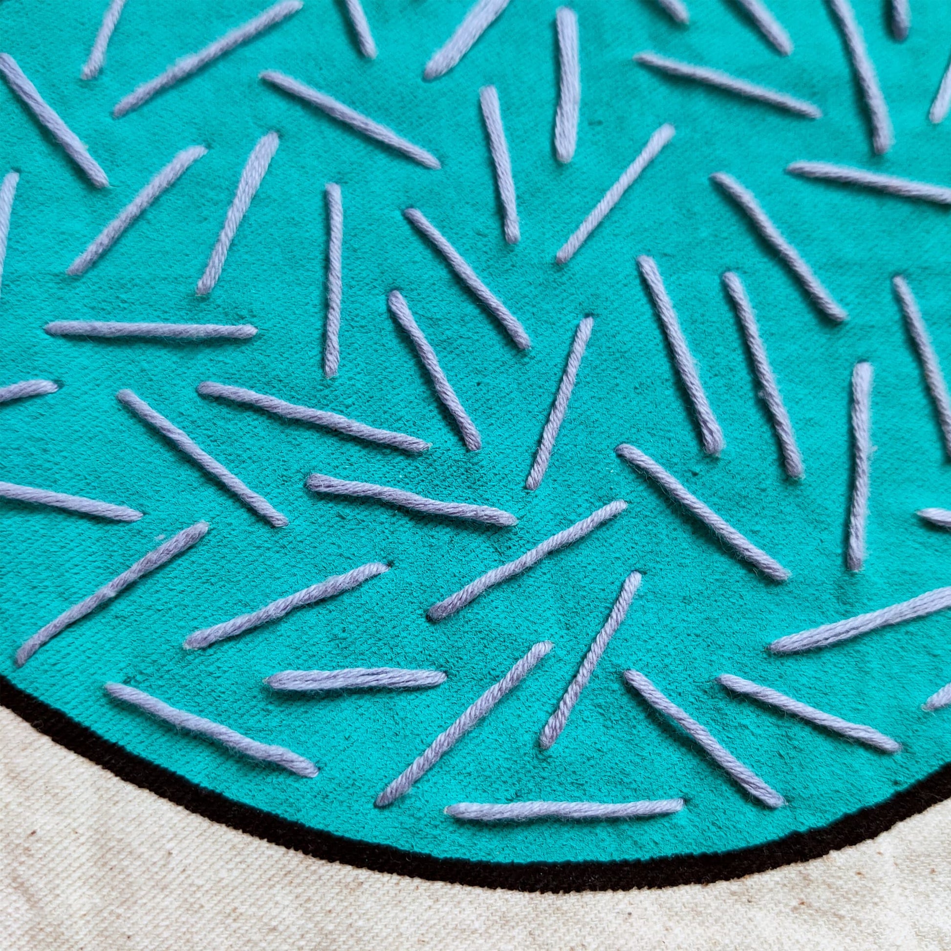 - Unbleached Cotton Canvas, Acrylic Paint, Cotton Thread.