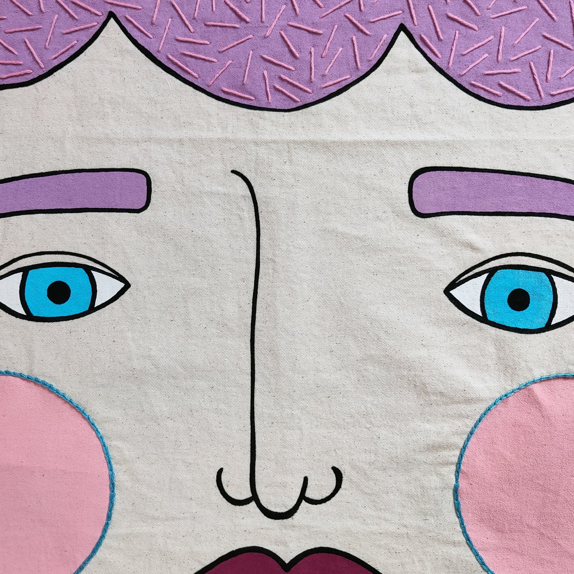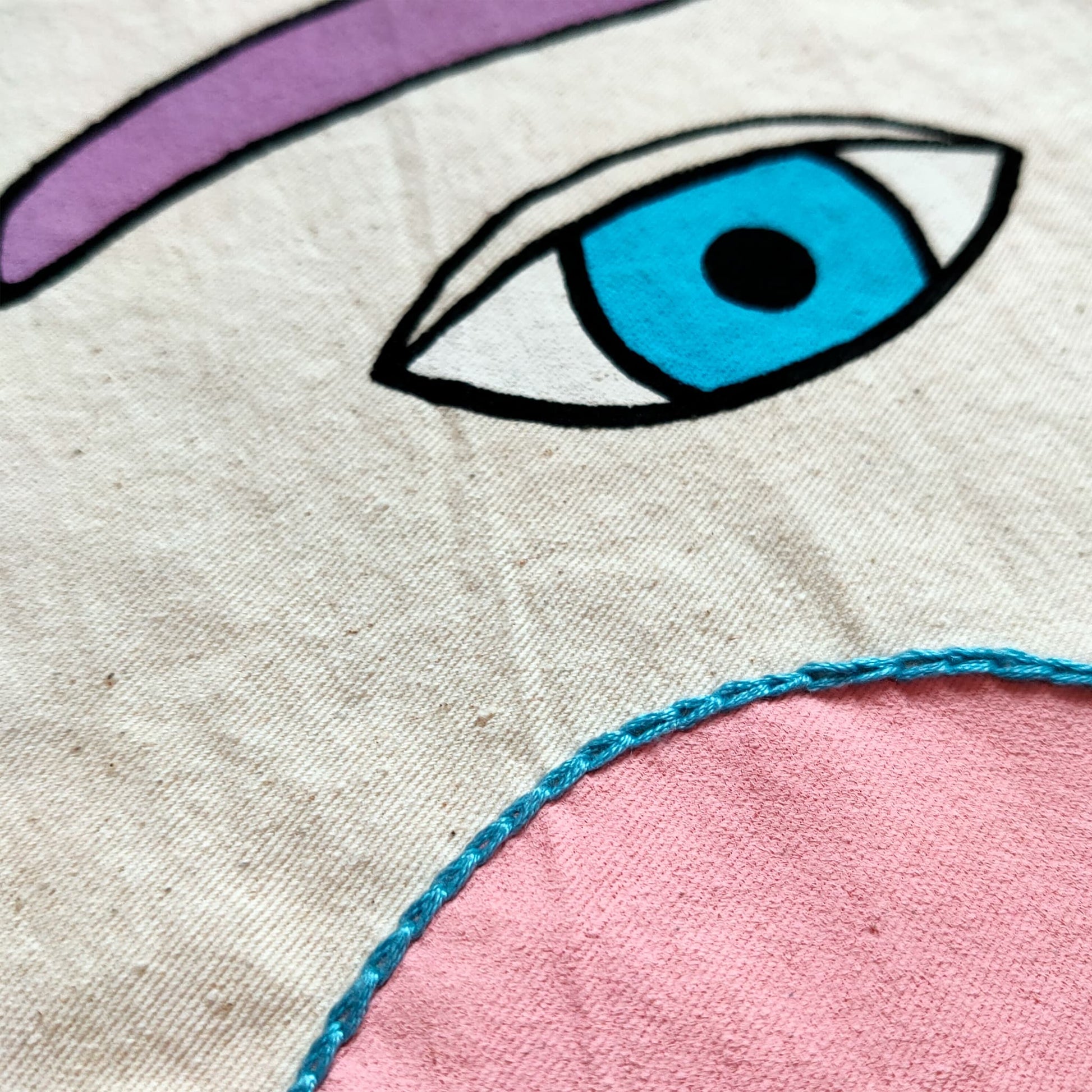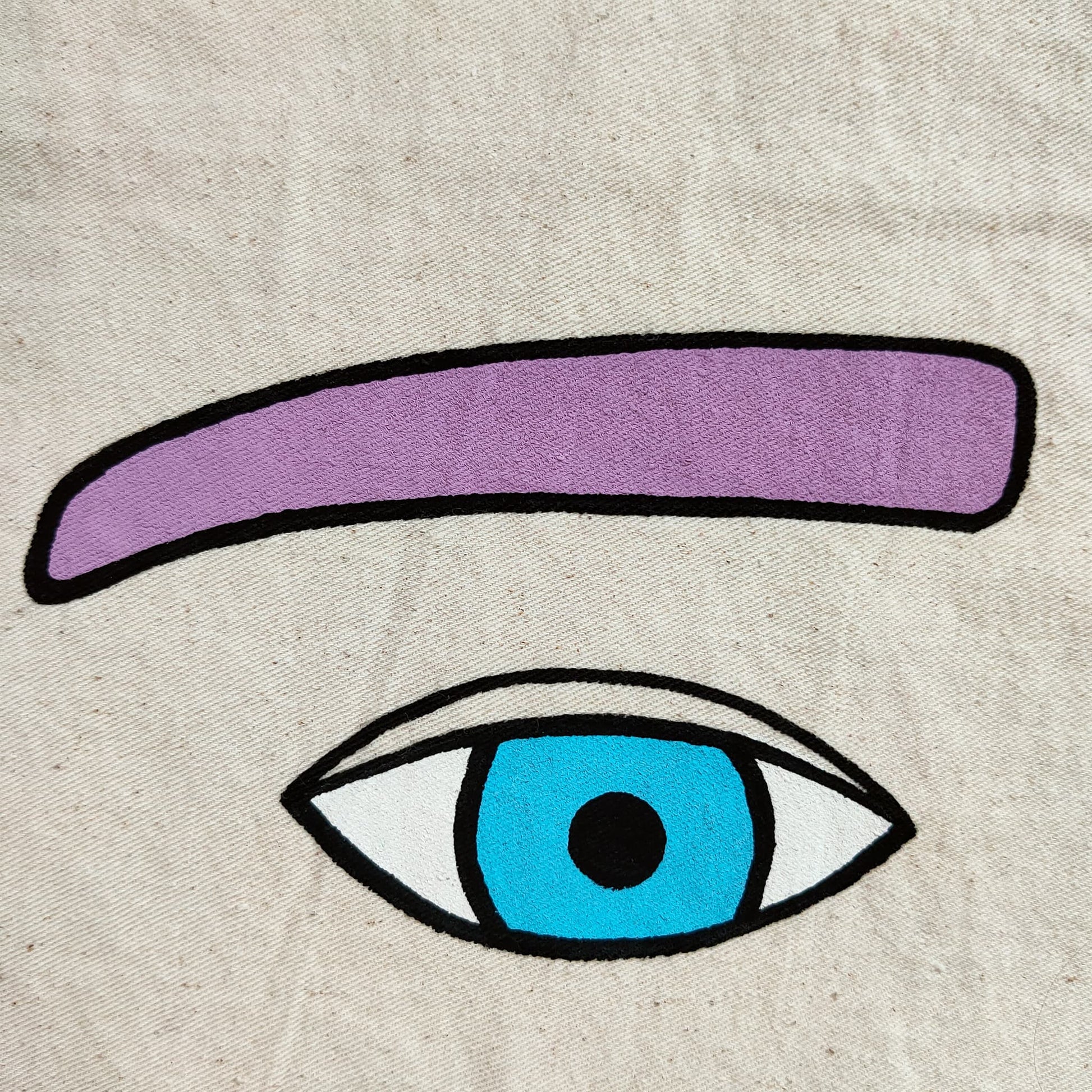 - Unbleached Cotton Canvas, Acrylic Paint, Cotton Thread.