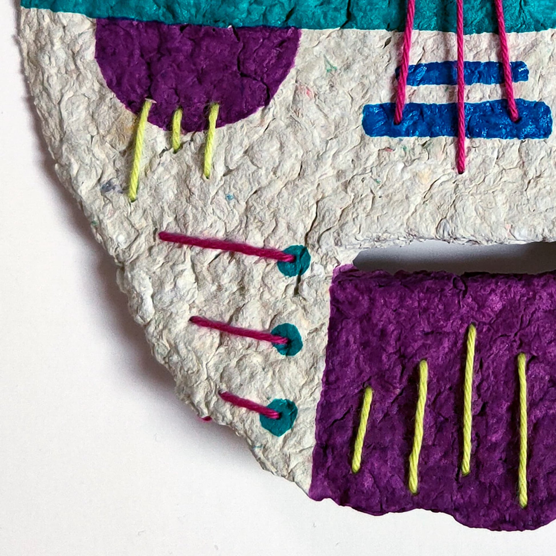 - Recycled Paper, Acrylic Paint, Cotton Thread.
