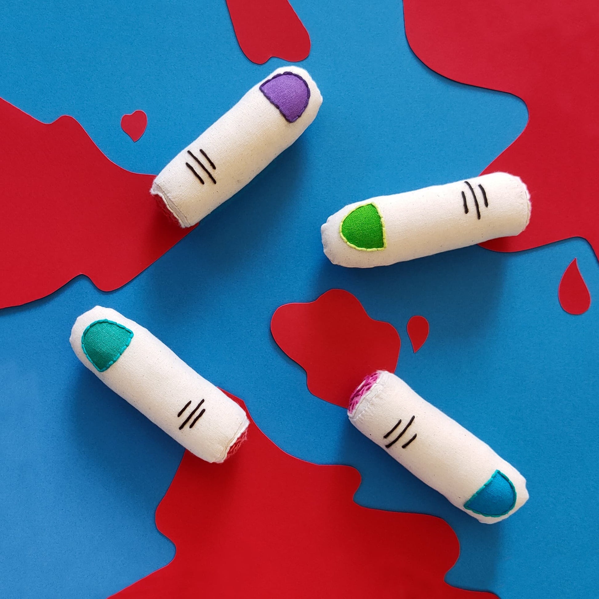 - Unbleached Cotton Canvas, Acrylic Paint, Cotton thread.
