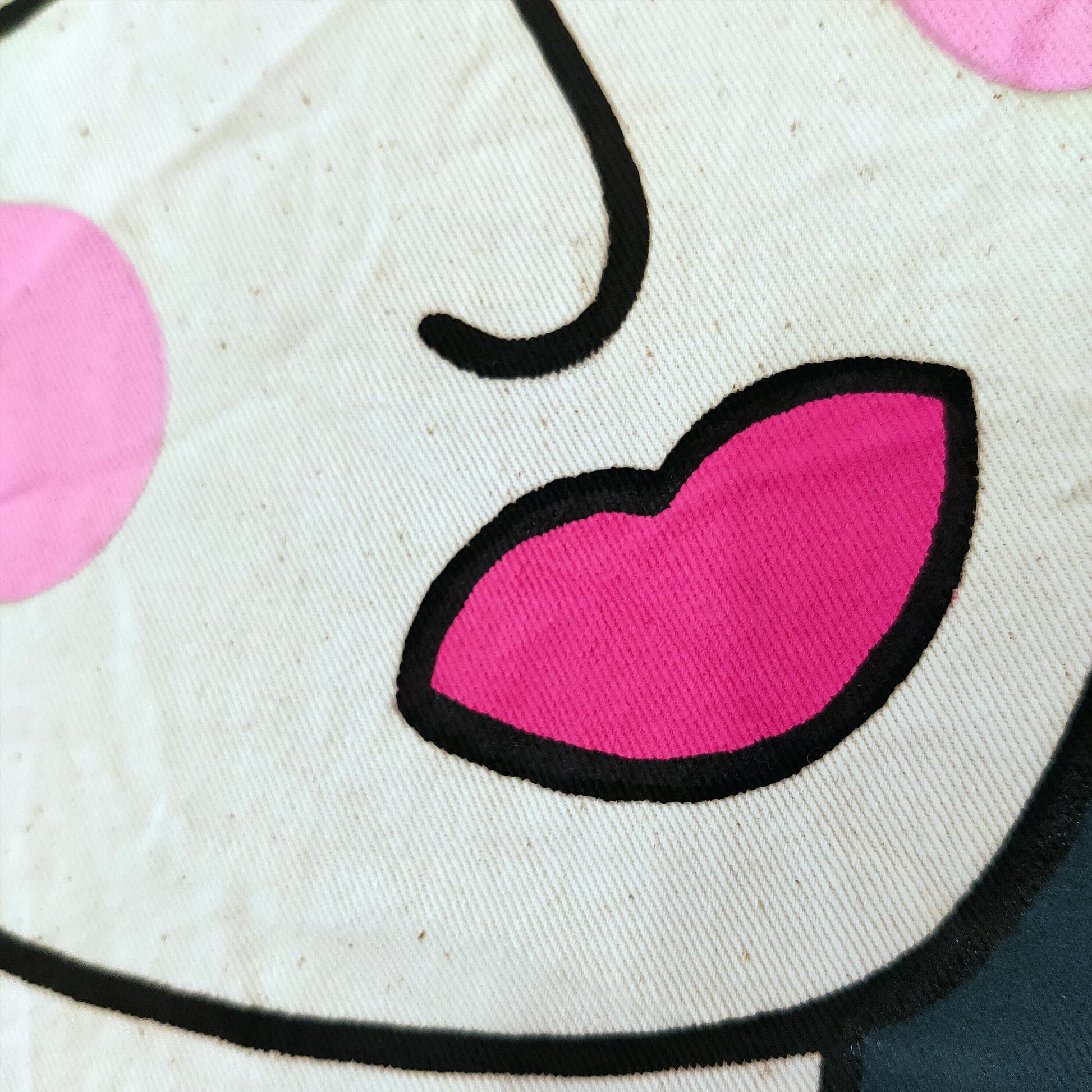- Unbleached Cotton Canvas, Acrylic Paint, Cotton Thread.