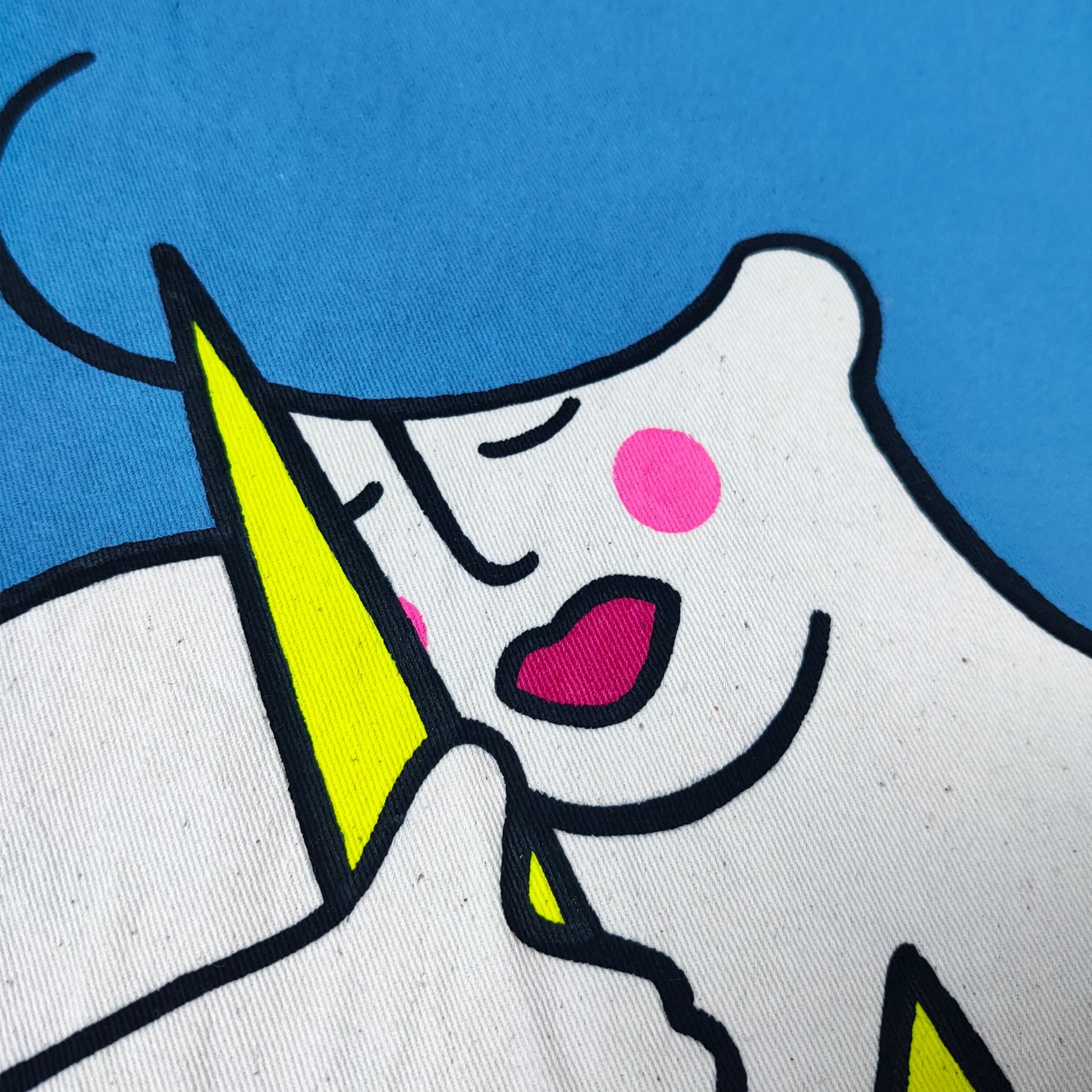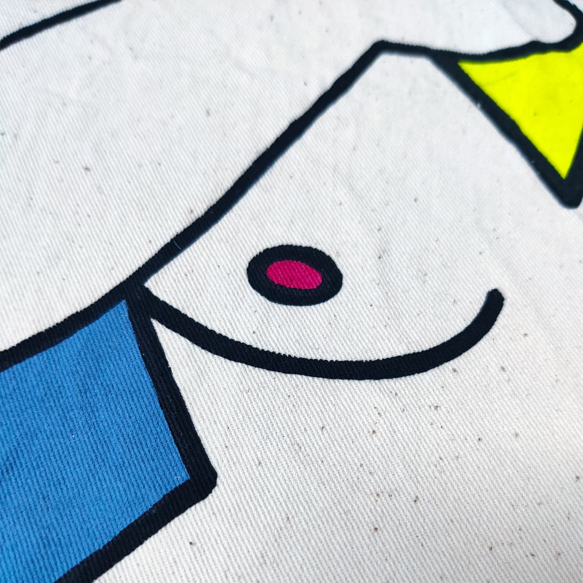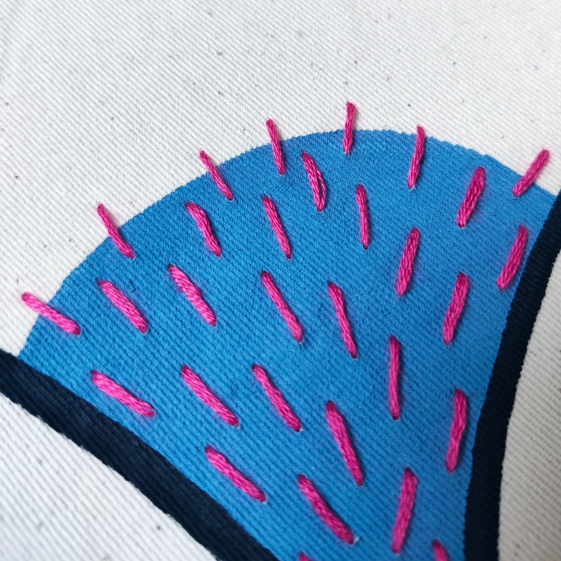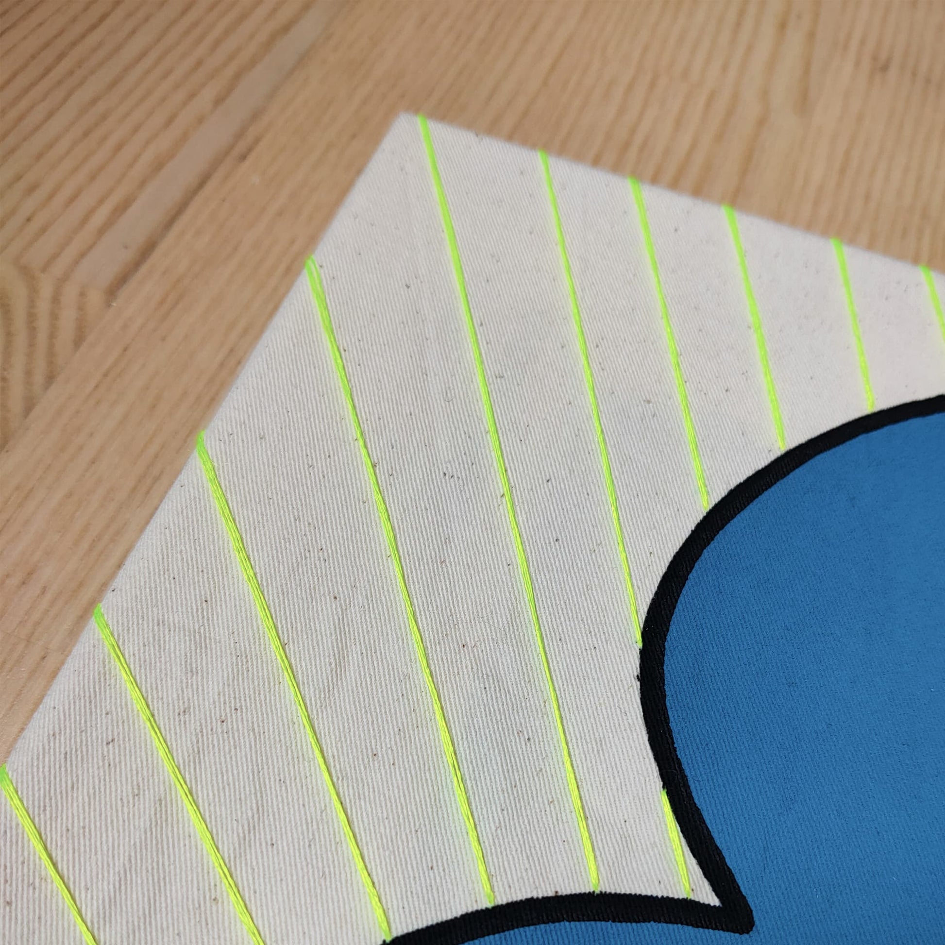 - Unbleached Cotton Canvas, Acrylic Paint, Cotton Thread.