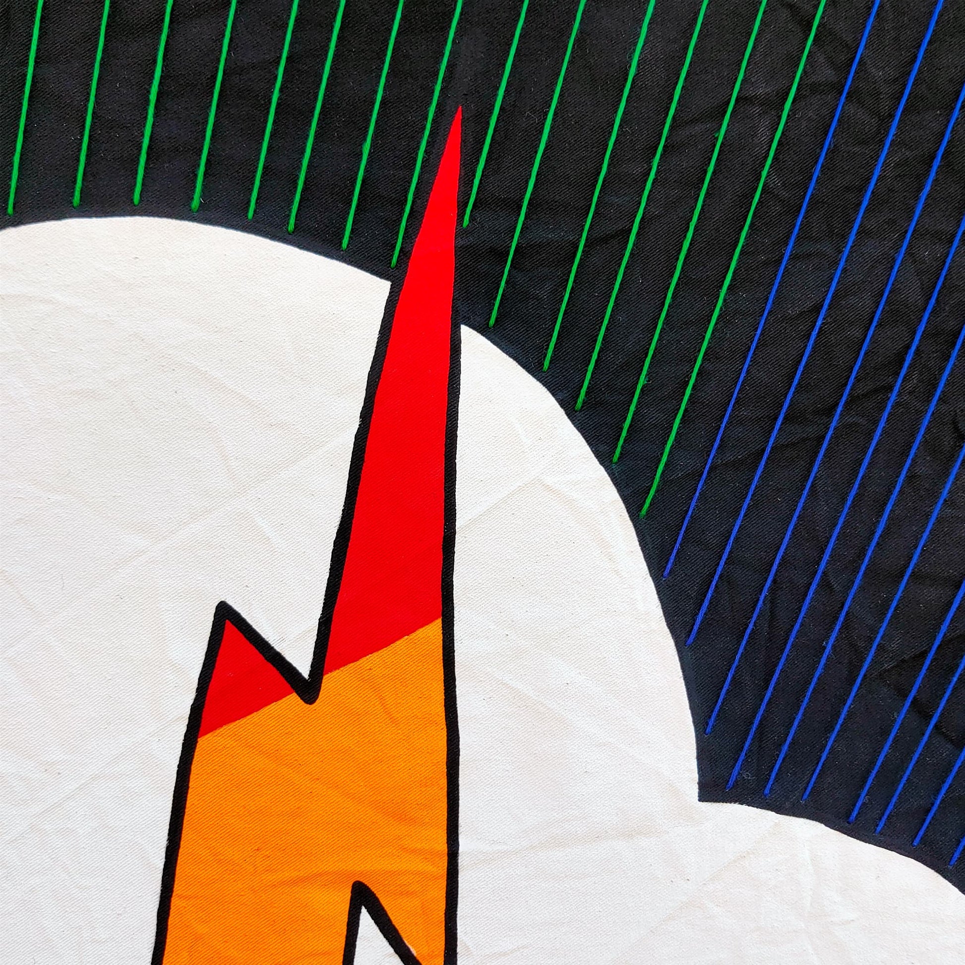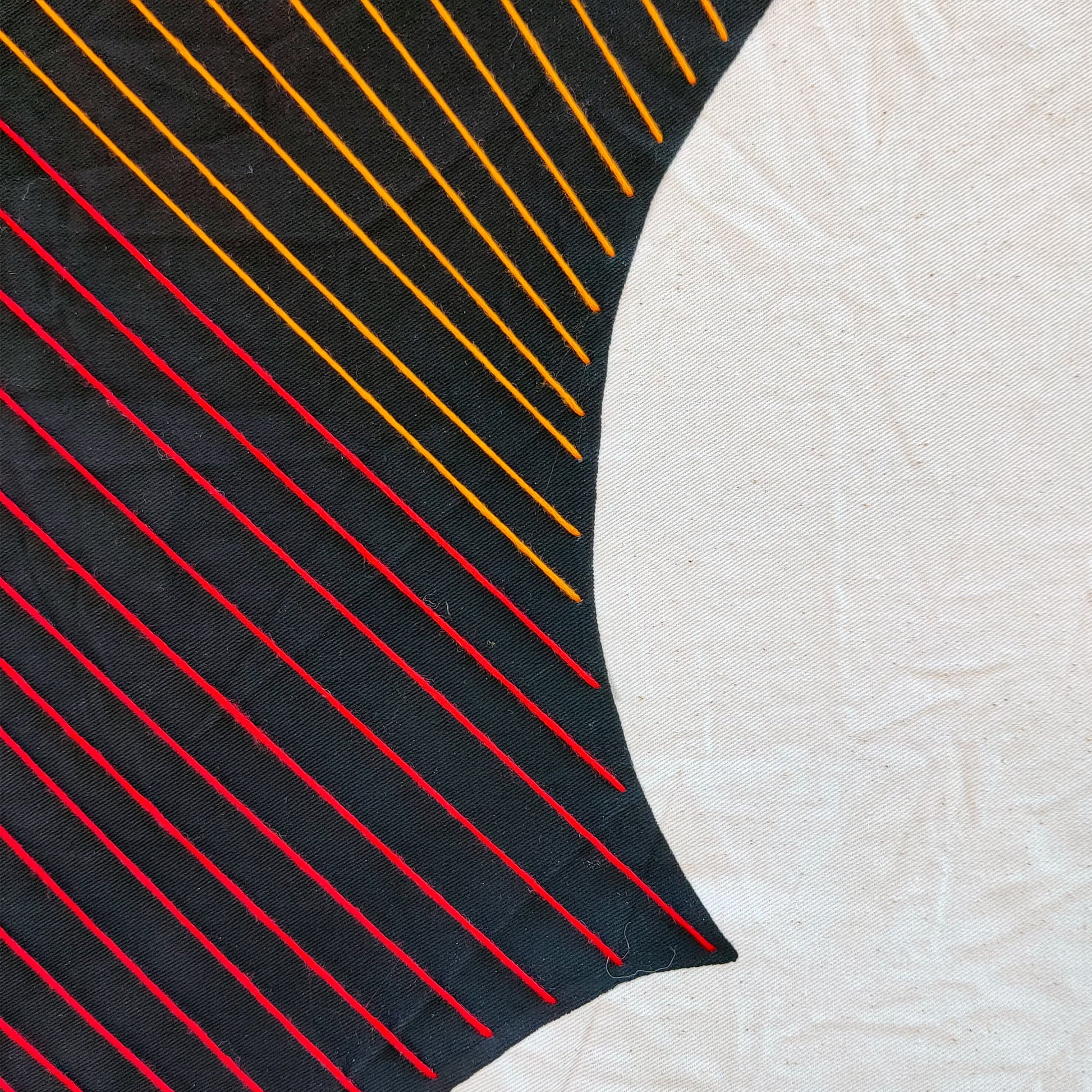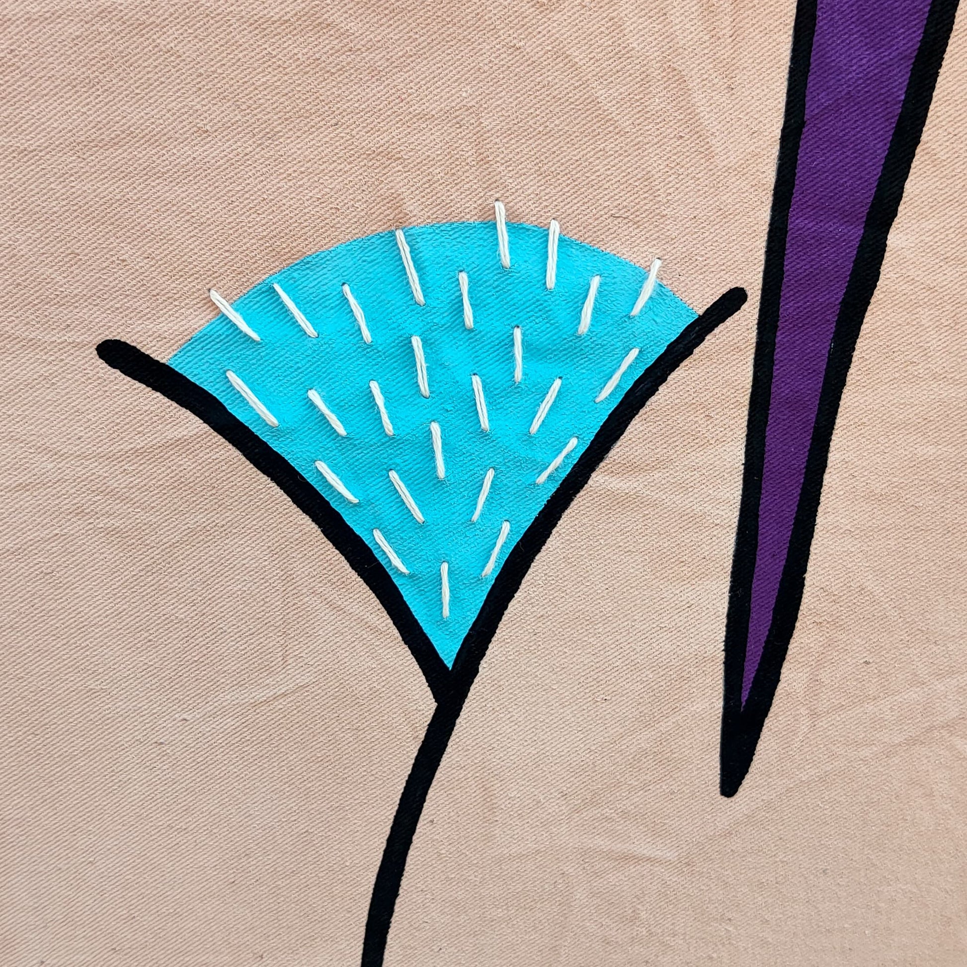 - Unbleached Cotton Canvas, Acrylic Paint, Cotton Thread.