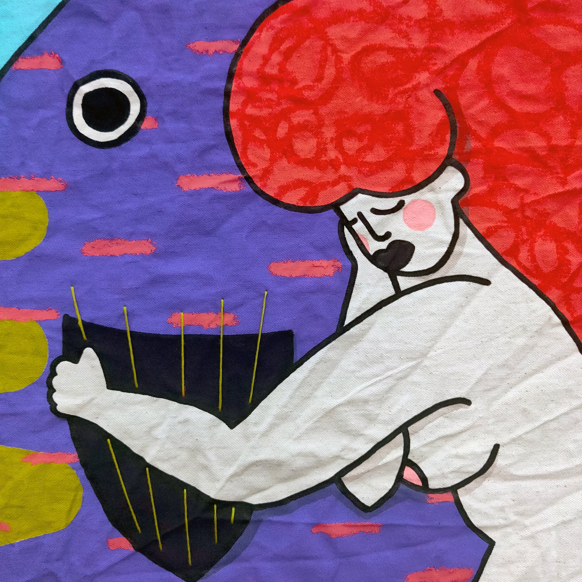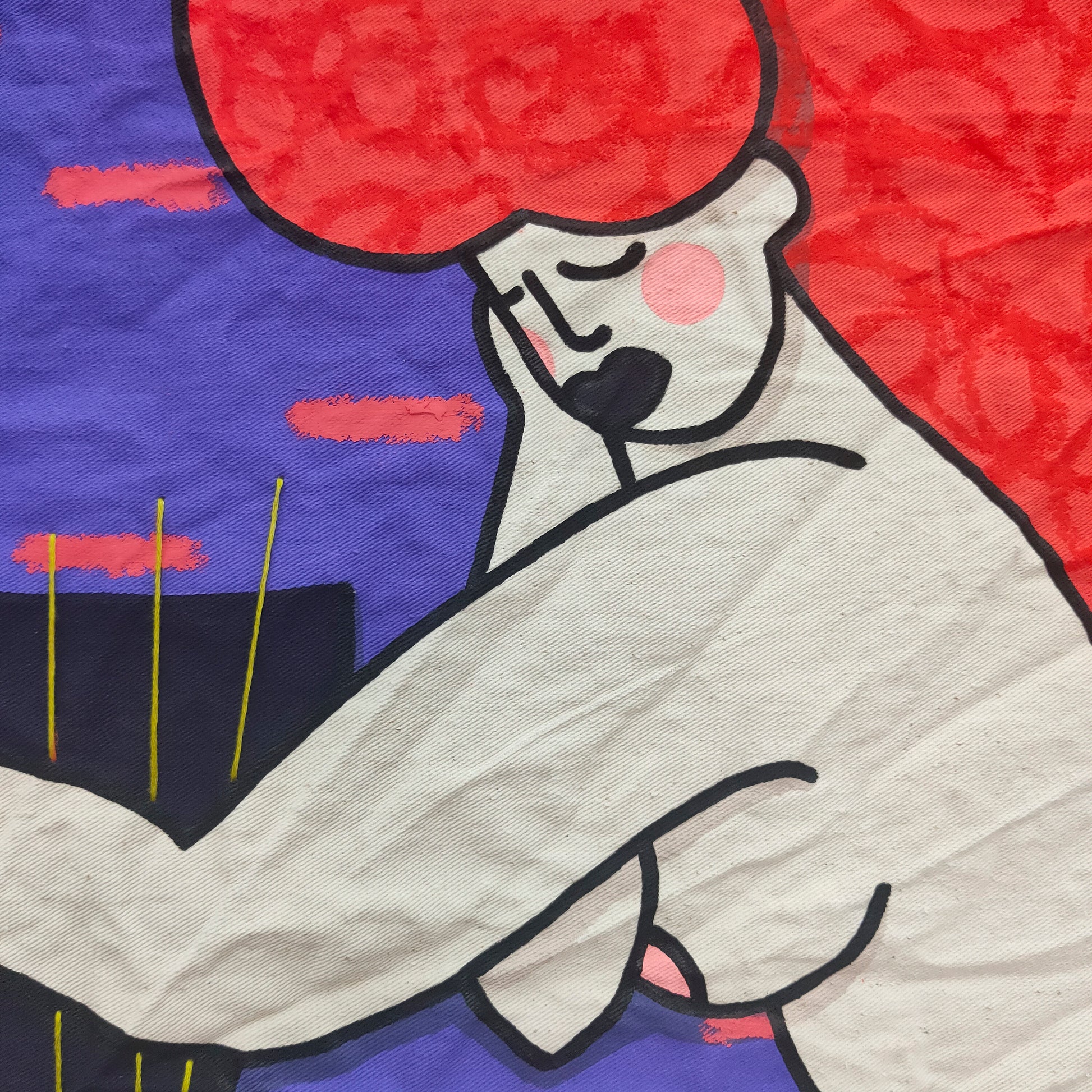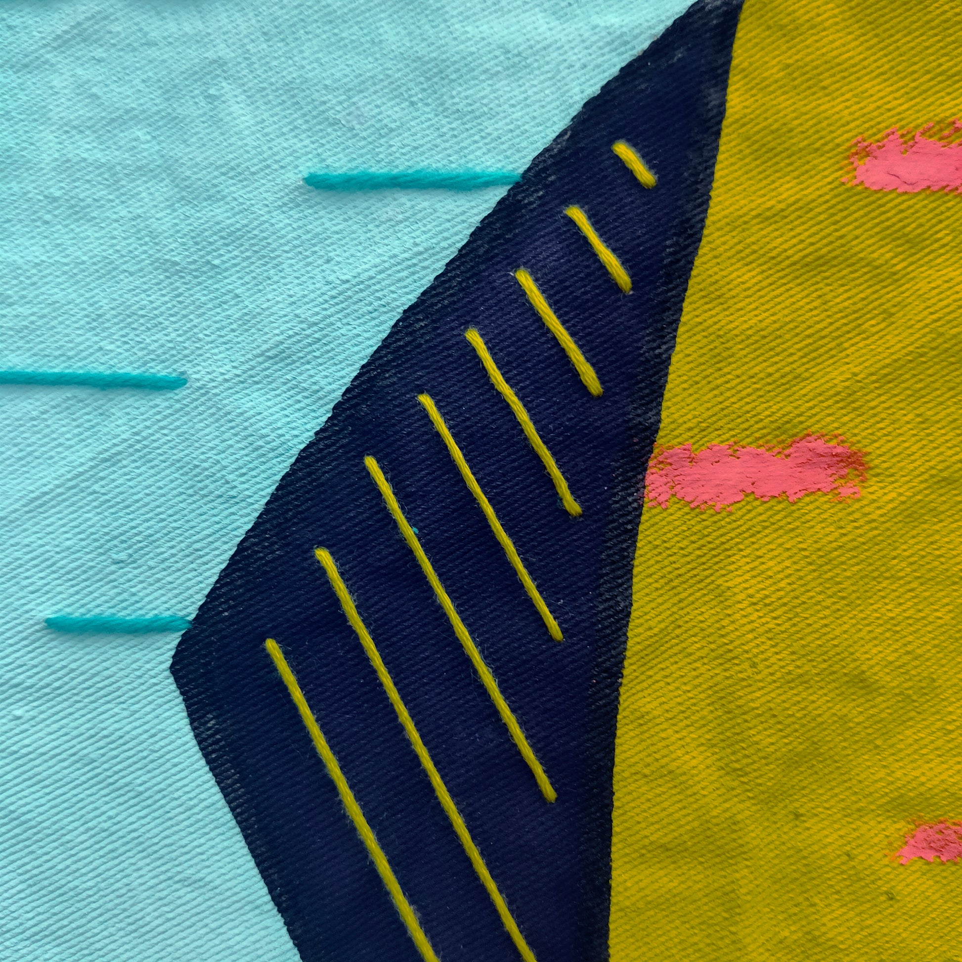 Unbleached Cotton Canvas, Acrylic Paint, Oil Pastels, Cotton thread.